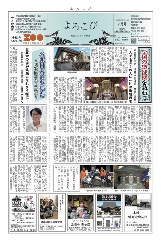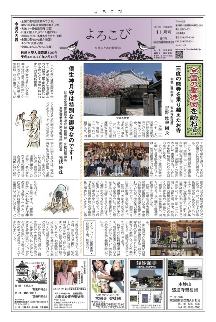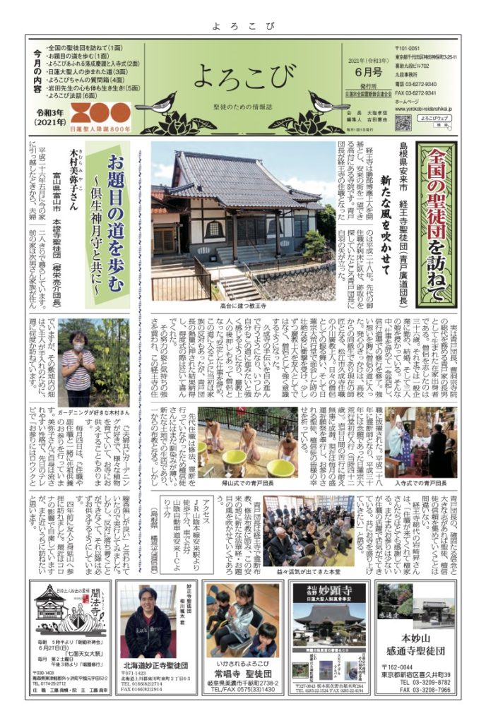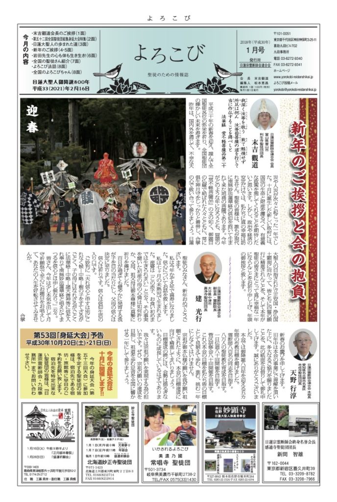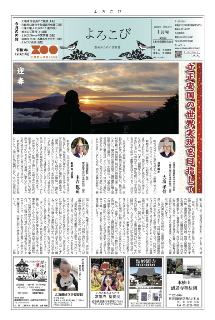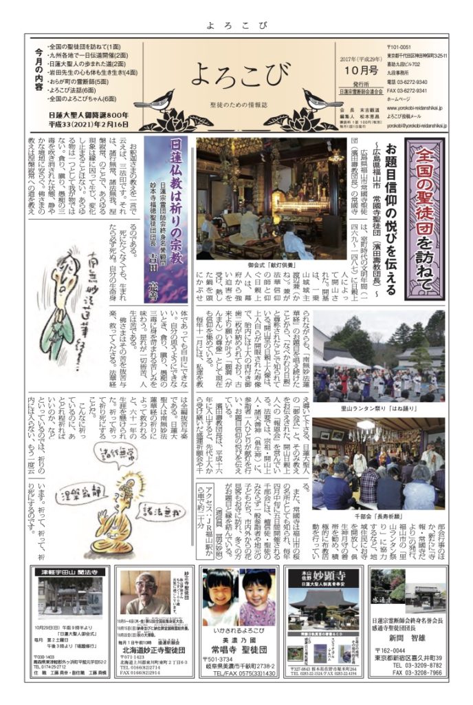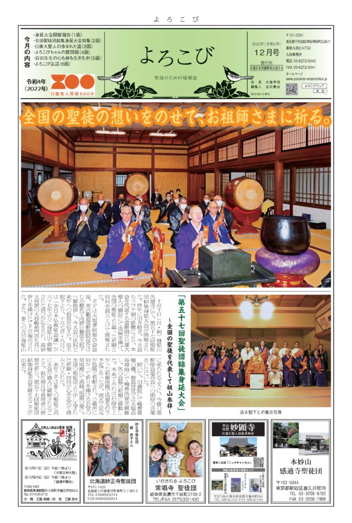 「よろこび」は日蓮宗全国霊断師会連合会の機関紙です