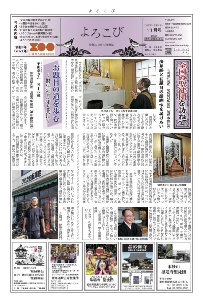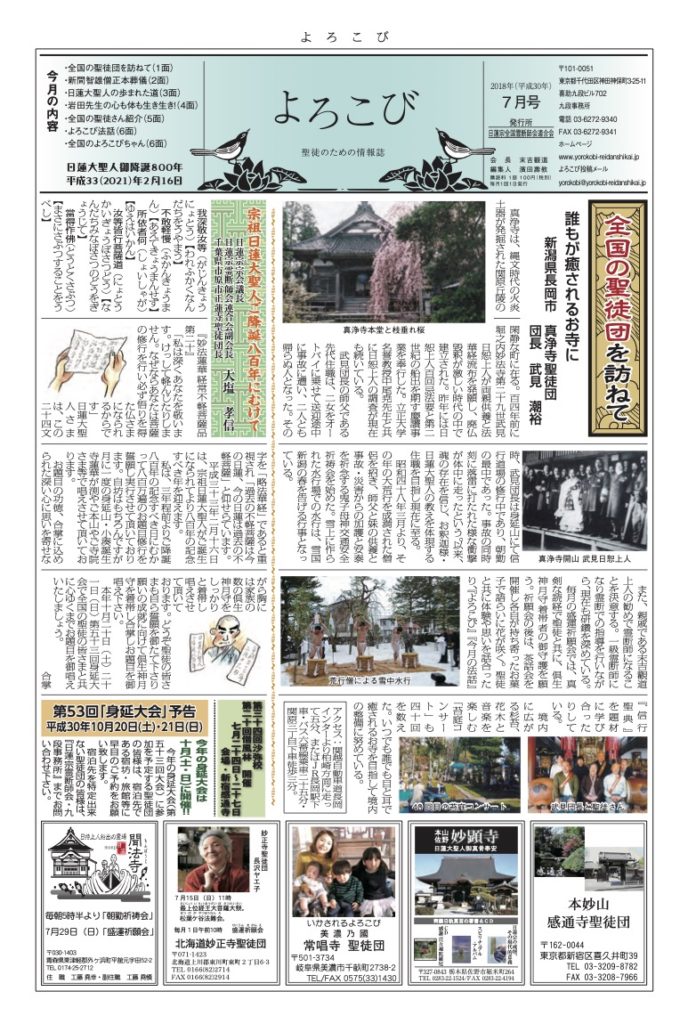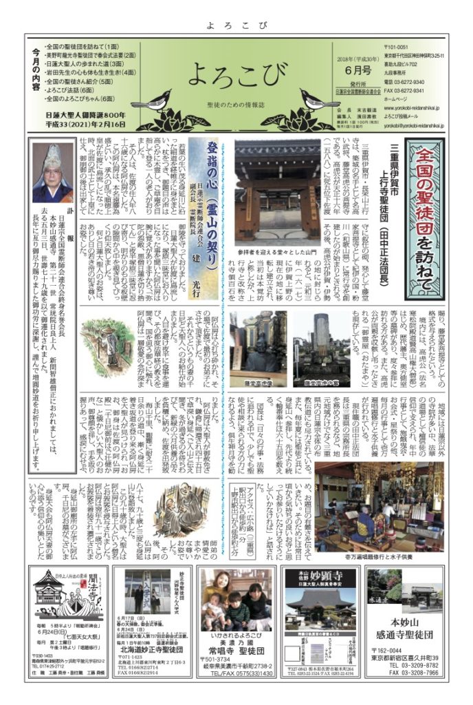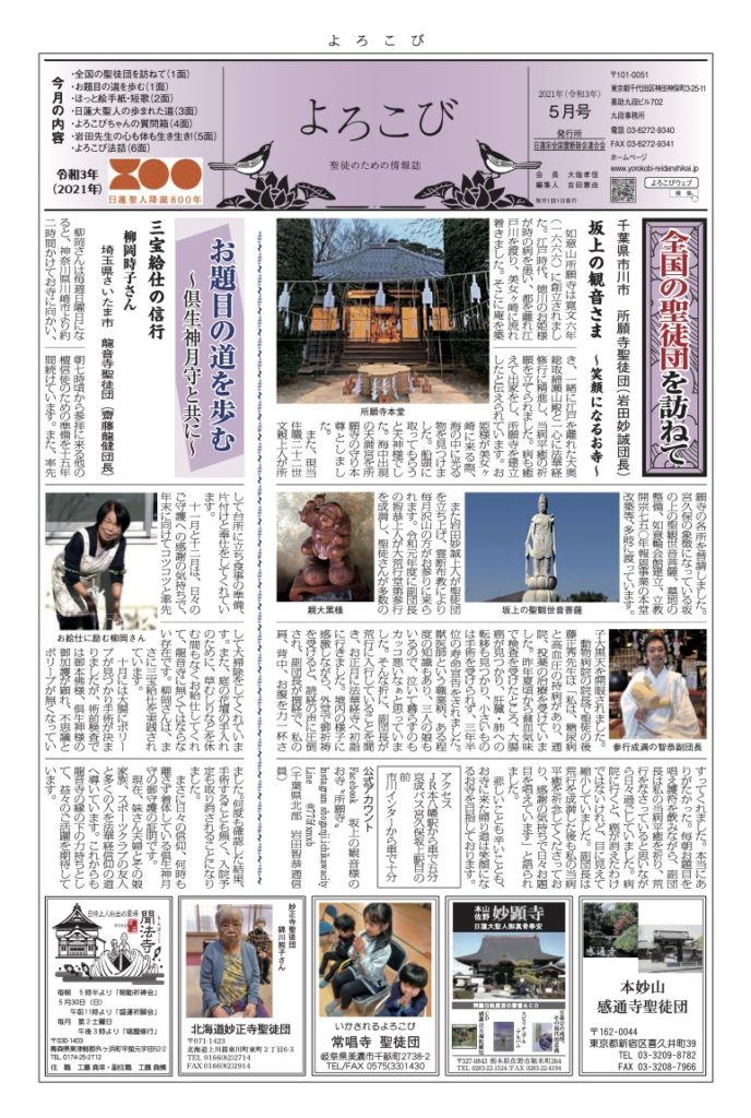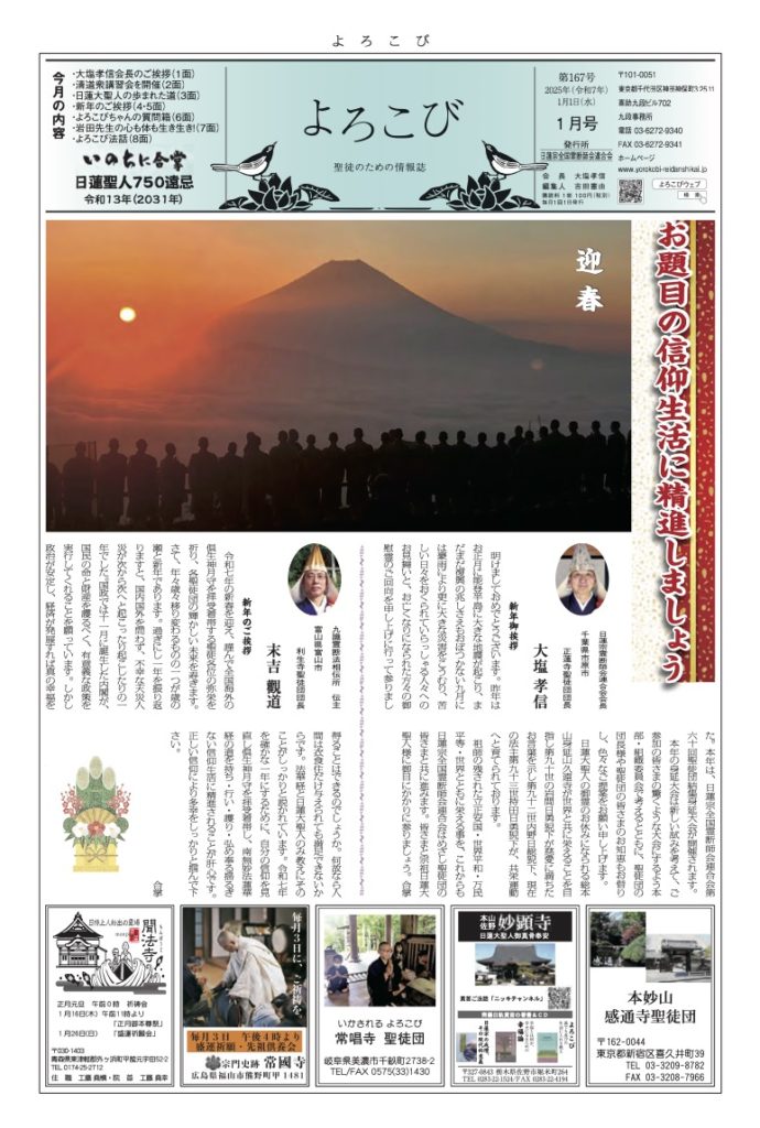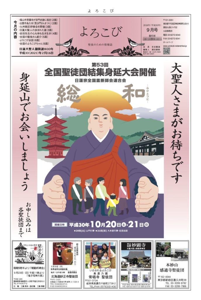 「よろこび」は日蓮宗全国霊断師会連合会の機関紙です