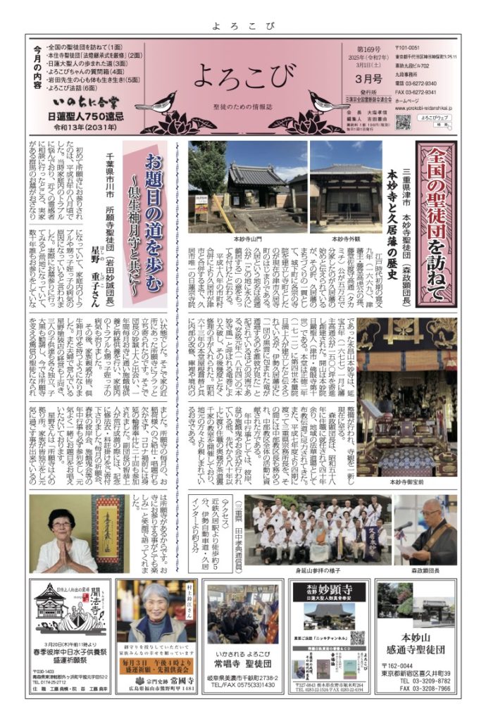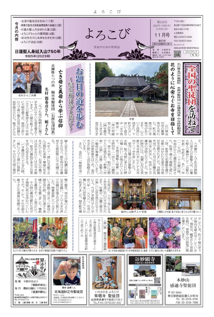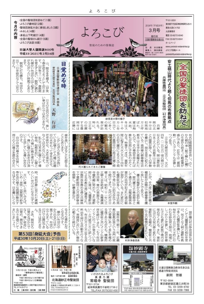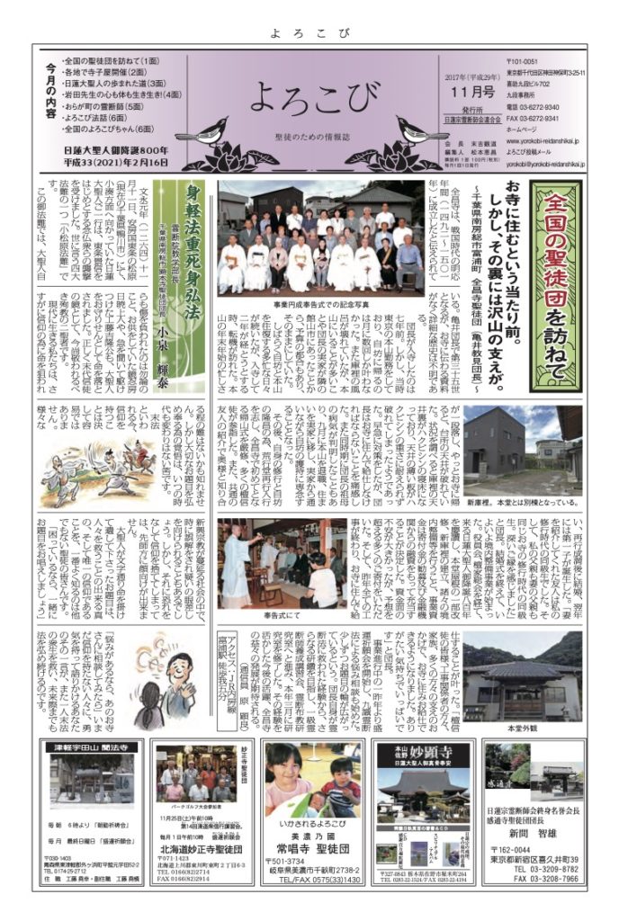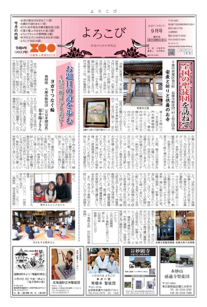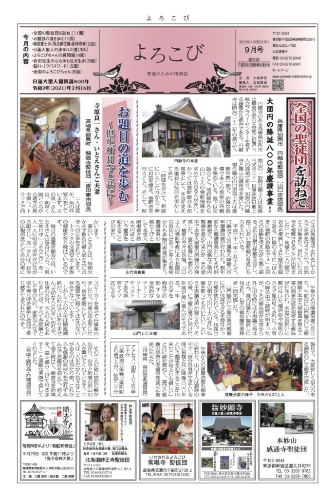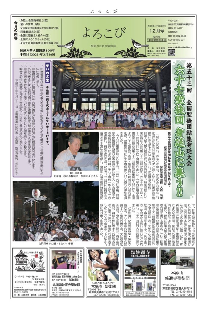 「よろこび」は日蓮宗全国霊断師会連合会の機関紙です